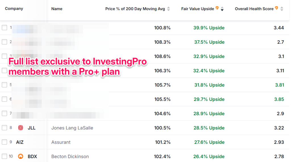 More specifically, these large-cap US stocks are trading just above their 200-day moving average while still showing an undervaluation of 26.4% to 39.9%.