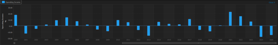 To put that into perspective, revenues already rose 14% in 2025 and operating profits surged 31%.