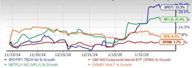 Here we recommend three streaming content behemoths with a favorable Zacks Rank to strengthen your portfolio. These are Netflix Inc. NFLX, The Walt Disney Co. DIS and Spotify Technology S.A. SPOT.