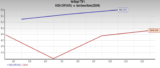On the other hand, NVIDIA is a proven stock that has delivered consistent returns despite geopolitical challenges and intense competition. NVIDIA remains strongly positioned for future growth fueled by rising demand for its chips and a continued increase in data center spending. NVIDIA’s net profit margin of 53% exceeds the Semiconductor – General industry’s average of 50.1%, underscoring its strong growth and making it an attractive long-term buy (read more: NVIDIA vs. Palantir: One AI Stock is a Clear Buy Right Now).