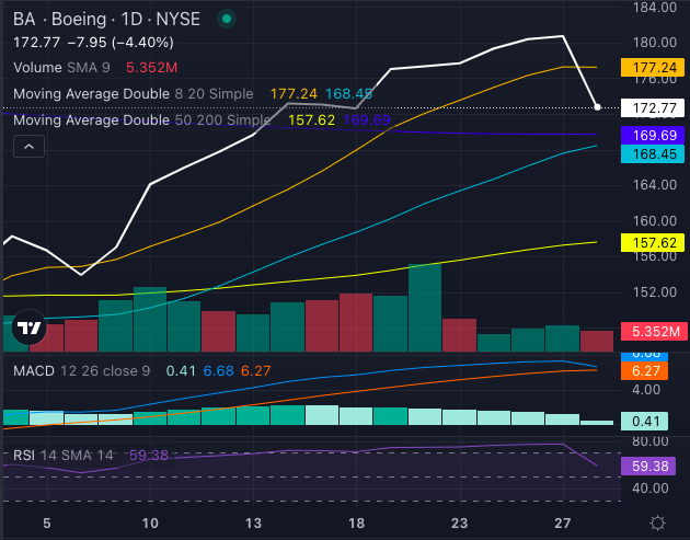 Despite Monday’s turbulence, Boeing’s technical indicators suggest a resilient stock.