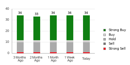 Workday currently has an average brokerage recommendation (ABR) of 1.71, on a scale of 1 to 5 (Strong Buy to Strong Sell), calculated based on the actual recommendations (Buy, Hold, Sell, etc.) made by 34 brokerage firms. An ABR of 1.71 approximates between Strong Buy and Buy.