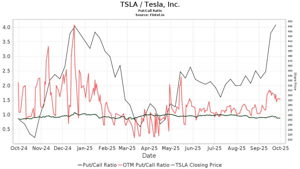 The put/call ratio of TSLA is 0.82, indicating a bullish outlook.