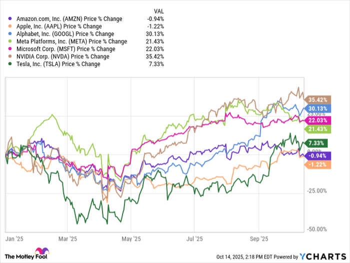 Key Points The “Magnificent Seven” cadre of stocks are among some of the best on Wall Street. The group of seven companies — Alphabet, Amazon (NASDAQ: AMZN), Apple (NASDAQ: AAPL), Meta Platforms, Microsoft, Nvidia, and Tesla — represents megacap companies that are market leaders in their fields, are innovative, and have a strong financial performance. ...