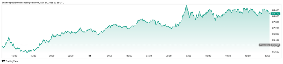 Bitcoin (BTC) is currently trading at US$88,242.18, a 3.6 percent increase over the past 24 hours. The day’s trading range has seen a low of US$87,300.18 and a high of US$88,713.83.