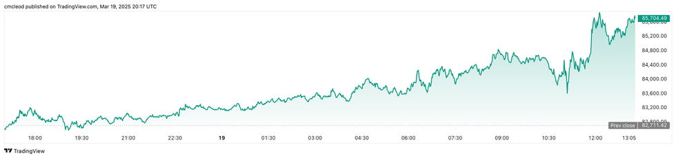 Bitcoin performance, March 19, 2025.