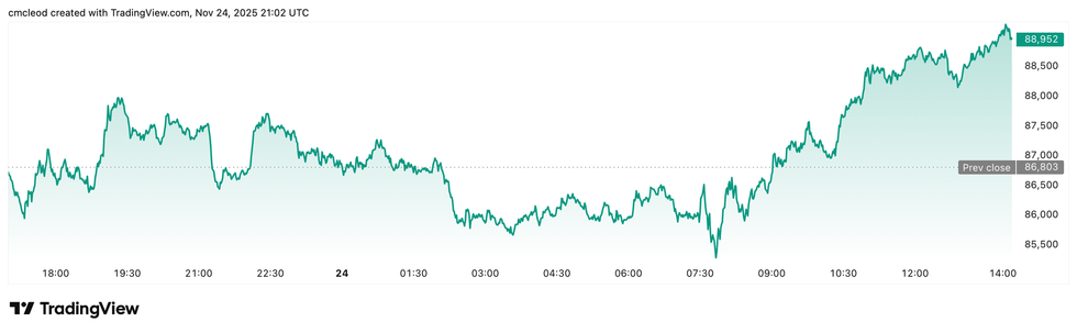 Bitcoin (BTC) was priced at US$89,102.53, up 1.9 percent in 24 hours.