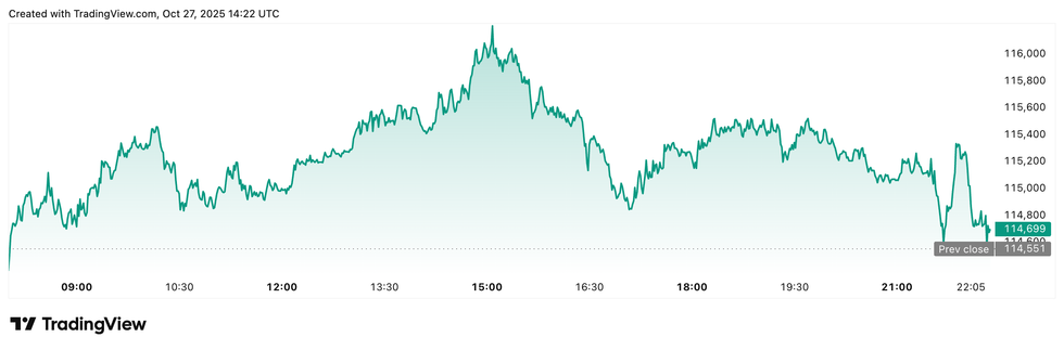 Bitcoin price performance, October 27, 2025.
