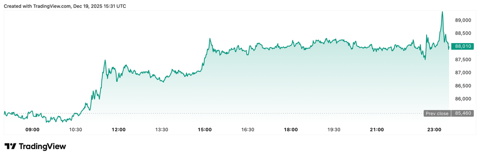 Bitcoin price performance, December 19, 2025.