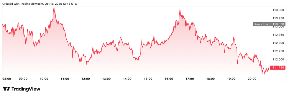 Bitcoin price performance, October 15, 2025.