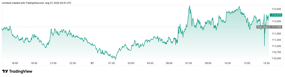 Bitcoin price performance, August 27, 2025.
