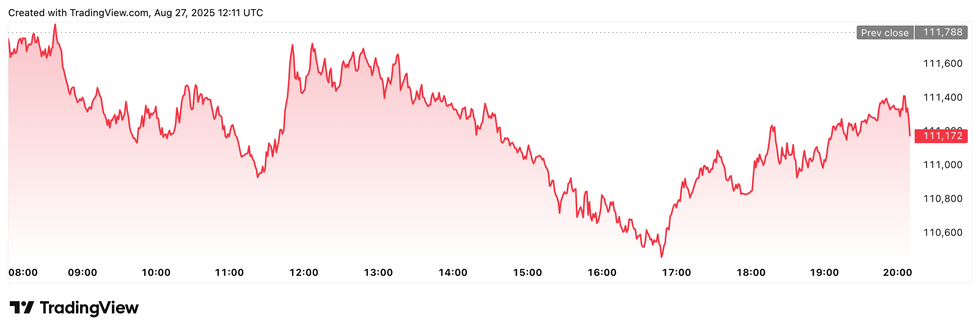 Bitcoin price performance, August 27, 2025.