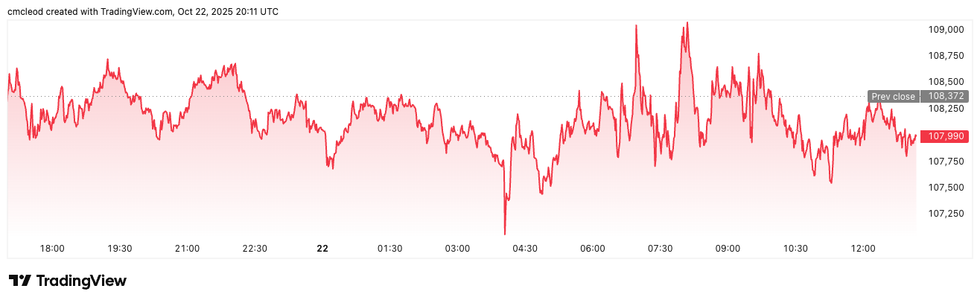 Bitcoin (BTC) was priced at US$107,811, a 3.5 percent decrease in 24 hours. Its lowest valuation of the day was US$107,657, and its highest was US$108,936.