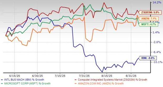 International Business Machines Corporation IBM has declined 8.6% over the past three months against the industry’s growth of 9.8% due to macroeconomic challenges. The stock has lagged peers like Microsoft Corporation MSFT and Amazon.com, Inc. AMZN. While Microsoft has gained 4.7%, Amazon has rallied 7.1% over this period, driven by the rising adoption of enterprise capabilities of Azure OpenAI and Amazon Web Services.