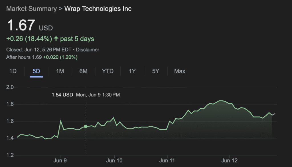 Investors likely perceive these protests and the public backlash as clear indicators that conventional methods such as pain-compliance and physical force carry significant legal, political, and operational risks. Agencies are thus shifting towards non-lethal, politically acceptable solutions designed to manage and defuse potentially volatile interactions.Wrap Technologies Inc (WRAP) Stock Chart