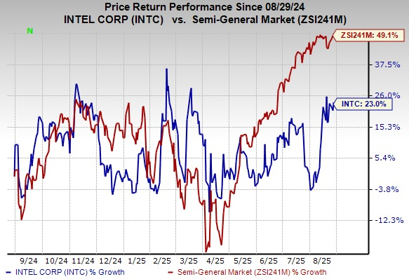 Intel shares have gained 23% over the past year compared with the industry’s growth of 49.1%.