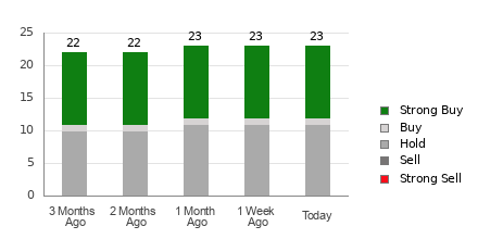 Deere currently has an average brokerage recommendation (ABR) of 2.00, on a scale of 1 to 5 (Strong Buy to Strong Sell), calculated based on the actual recommendations (Buy, Hold, Sell, etc.) made by 23 brokerage firms. An ABR of 2.00 indicates Buy.