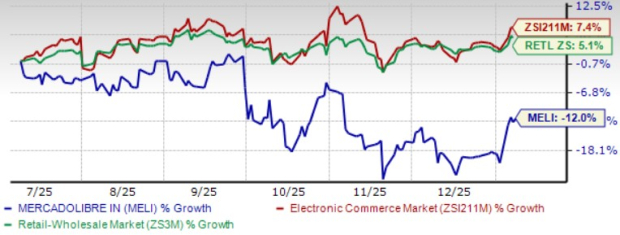 MELI shares have declined 12% in the past six months, underperforming the Zacks Internet-Commerce industry and the Zacks Retail-Wholesale sector’s increase of 7.4% and 5.1%, respectively.