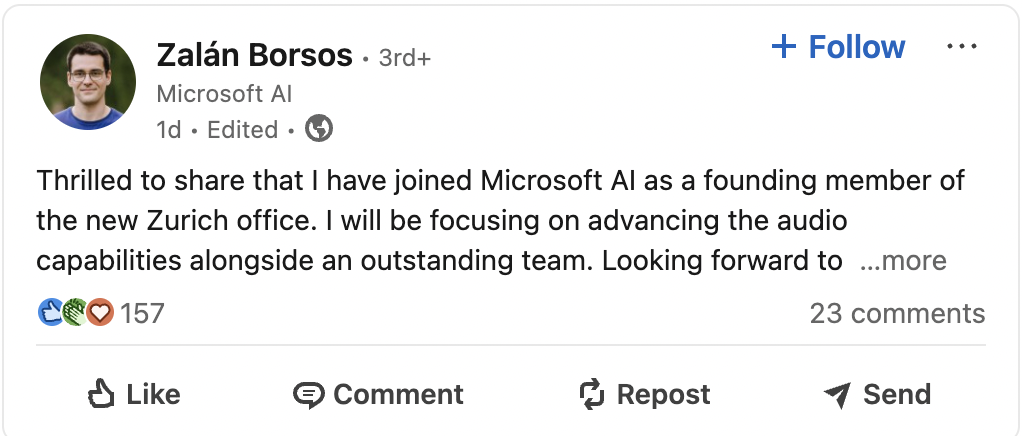 What Happened: Microsoft has onboarded Marco Tagliasacchi and Zalán Borsos. The duo who played key roles in developing the AI podcasting feature “Audio Overviews,” announced their move on Tuesday.