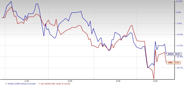 However, as U.S. tariffs and new export restrictions weigh on tech sentiment, both stocks are down sharply this year. Year to date, NVDA and AMD stocks have plunged 22.2% and 27%, respectively.
