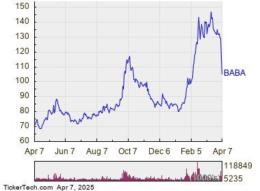In trading on Monday, shares of Alibaba Group Holding Ltd (Symbol: BABA) entered into oversold territory, hitting an RSI reading of 27.0, after changing hands as low as $105.15 per share. By comparison, the current RSI reading of the S&P 500 ETF (SPY) is 21.5. A bullish investor could look at BABA’s 27.0 RSI reading today as a sign that the recent heavy selling is in the process of exhausting itself, and begin to look for entry point opportunities on the buy side. The chart below shows the one year performance of BABA shares: