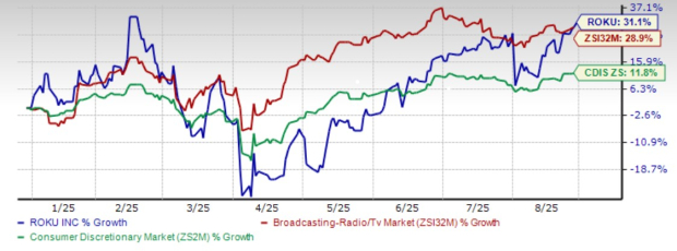 ROKU shares have risen 31.1% year to date, outperforming the Zacks Broadcast Radio and Television industry’s growth of 28.9% and the Zacks Consumer Discretionary sector’s return of 11.8%.