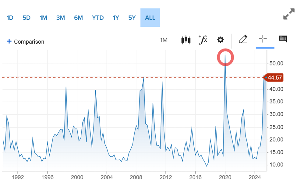 Almost exactly five years ago, as the COVID-19 virus amplified from a concentrated contagion to a full-blown pandemic, the CBOE Volatility Index (VIX) – aka, the market’s “fear index” – closed at the highest level ever seen.
