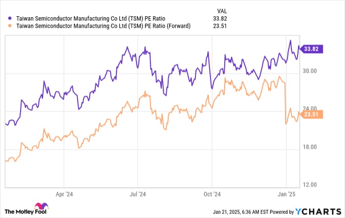 Even though management has projected strong growth in an industry that’s clearly expected to benefit from AI proliferation, TSMC’s stock trades for a fairly cheap price tag.