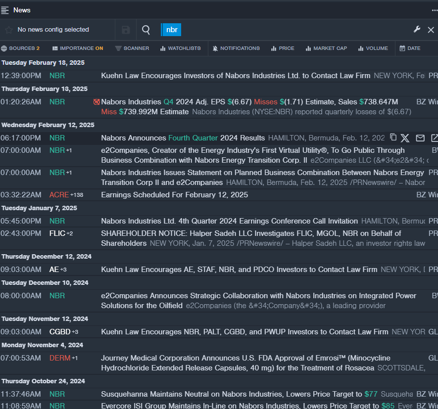 • Benzinga Pro’s real-time newsfeed alerted to latest NBR news.