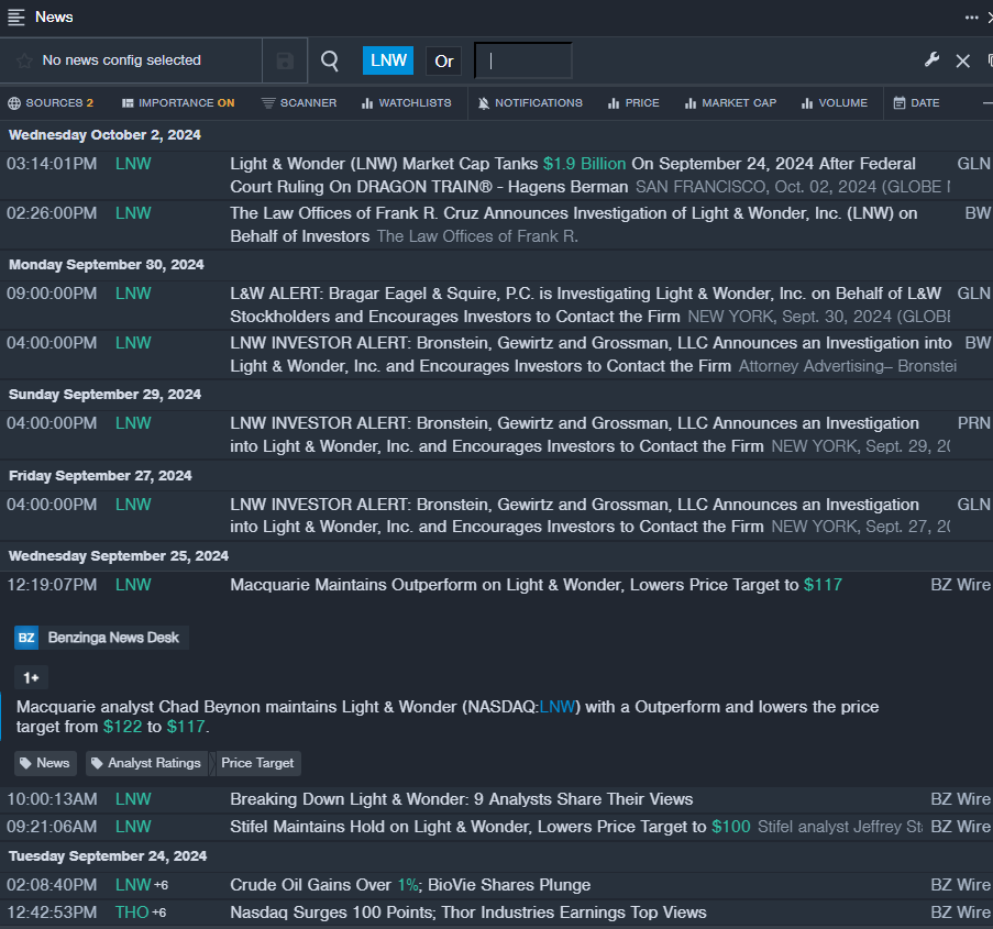 - Recent Analysis: Macquarie analyst Chad Beynon’s maintenance of Light & Wonder Inc’s Outperform rating may hint at a silver lining amidst the company’s stock tumble of 19% over the last month. With an RSI value of 26.57 and trading at $87.74, could LNW be a phoenix ready to rise from the ashes?