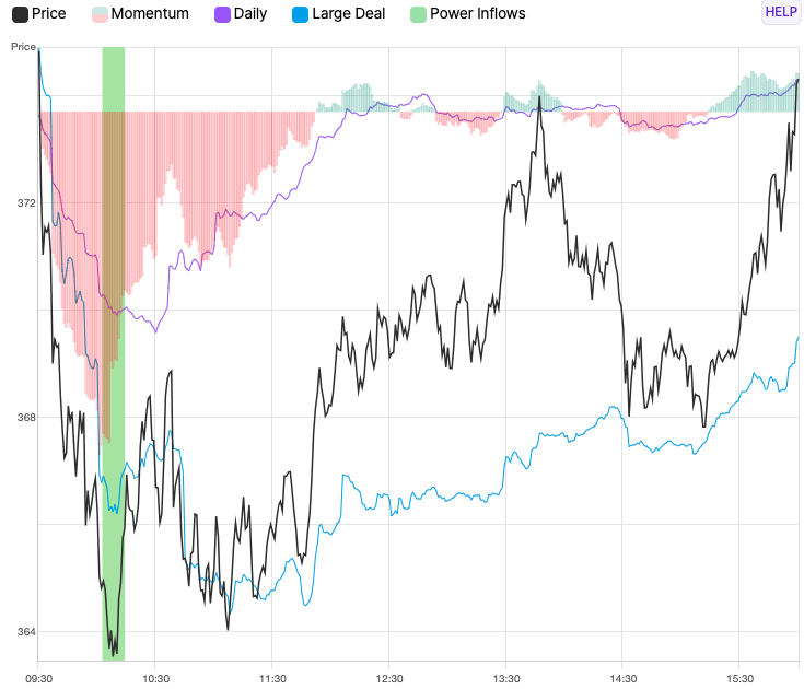 The Power Inflow occurs within the first two hours of the market open and generally signals the trend that helps gauge the stock’s overall direction, powered by institutional activity in the stock, for the remainder of the day.