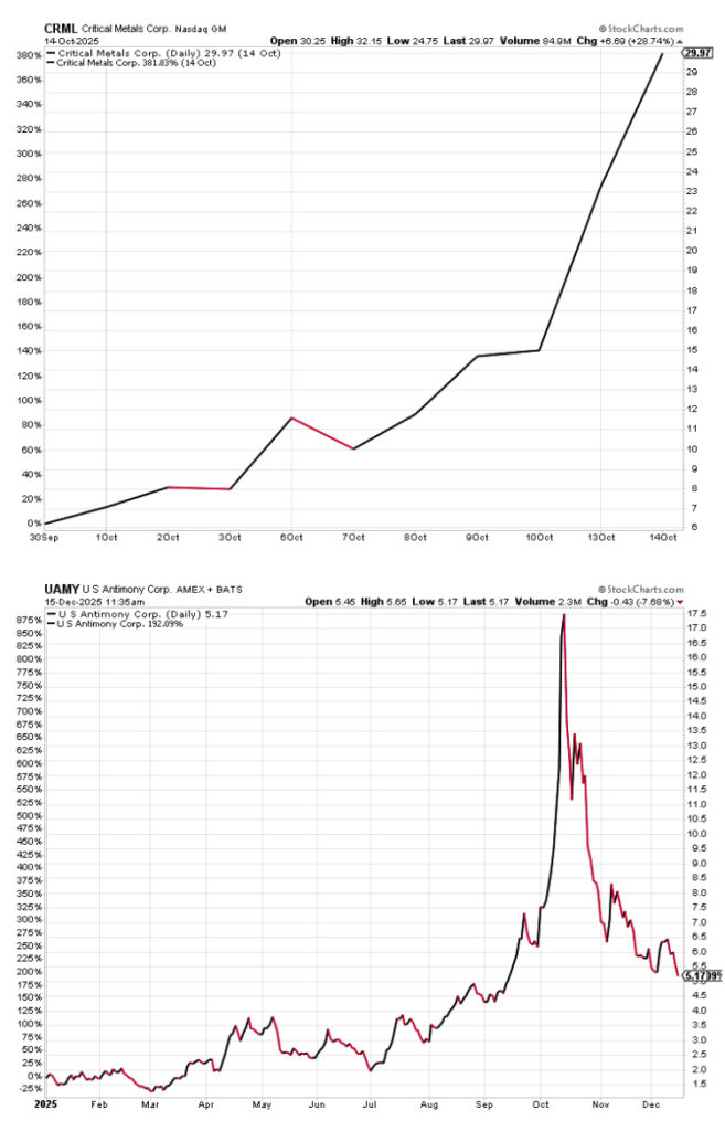 And at one point, United States Antimony (UAMY) was up over 900% this year without a single dollar of government money  – just anticipation.