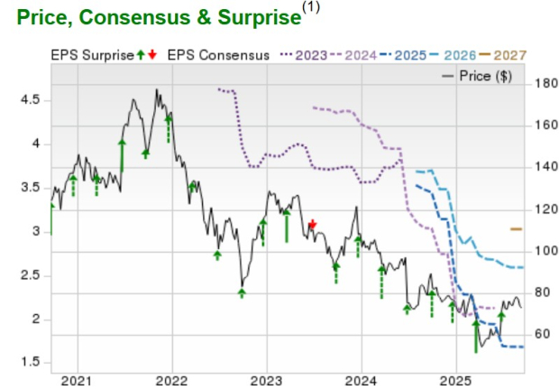 Still, Nike has exceeded the Zacks EPS Consensus for eight consecutive quarters with an impressive average earnings surprise of 41.99% in its last four quarterly reports.