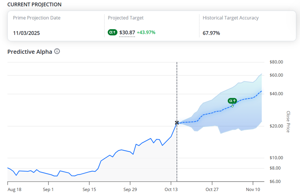 And so, even though investors should only buy a limited amount of ASTS themselves, a potential 21% gain over the next 30 days makes this early-stage firm a bet worth watching.